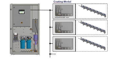 Unabhängig von der Produktionsgeschwindigkeit muss eine gleichbleibende Auftragsmenge (g/m²) einer Flüssigkeit auf das zu erzeugende Produkt aufgetragen werden.